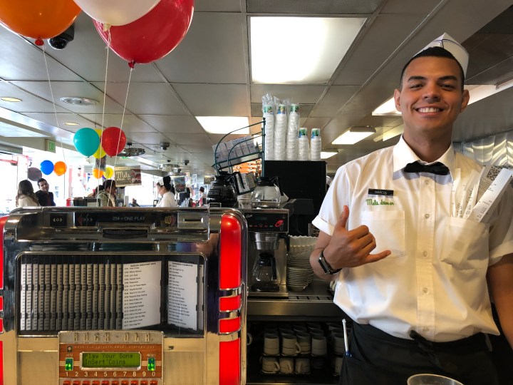 Lunch (light chicken sandwich) at Mel’s Drive In, opened in 1947 and the decor not updated since. The delightful waiter was happy to have his picture taken although he was keen on me putting everything on Instagram so that everyone could see it. I assured him I wasn’t going to make him famous.