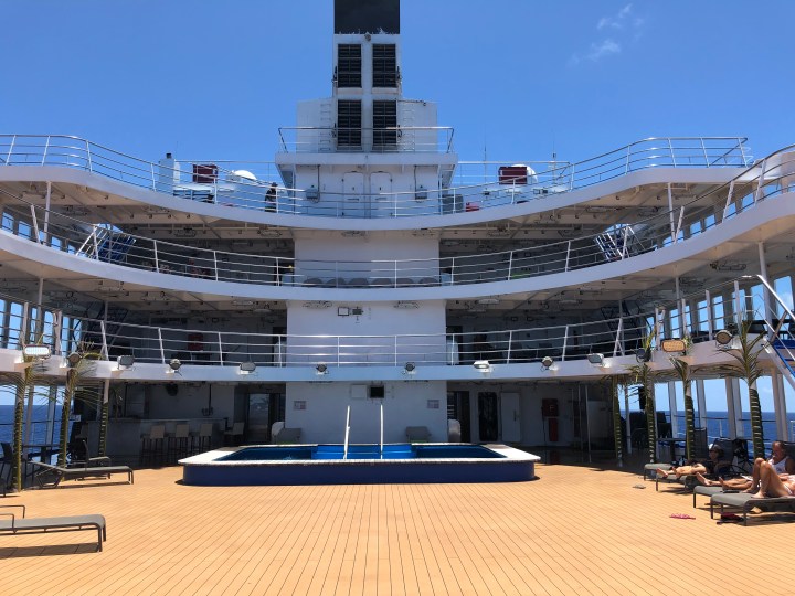 As we are not going anywhere today – apart from across the Pacific – I am going to talk about the ship. There are approximately 200 passengers, mainly the affluent retired. 100 French speakers, 50 English and 50 Germans. There are only about 5 from the UK. A few younger ones. There are activities and outings – most of which I am avoiding. At the moment there is a class on preparing ceviche the Tahitian way with coconut milk.