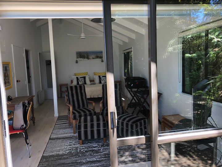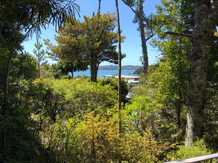 Picked up an ENORMOUS car at the airport, drove north for 4 hours and here I am in Paihia in the Bay of Islands. New Zealand to avoid error. Have a bed sit Airbnb on a hill surrounded by trees, overlooking the sea.