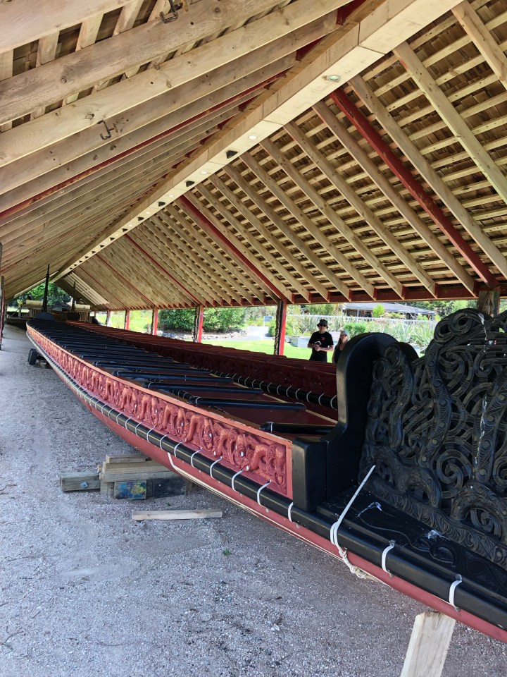 Saw the biggest ceremonial war canoe made – 40 rowers on each side and 40 spares down the middle, a Maori ceremonial house and saw my 7th (approximately) Haka in the last 3 weeks.