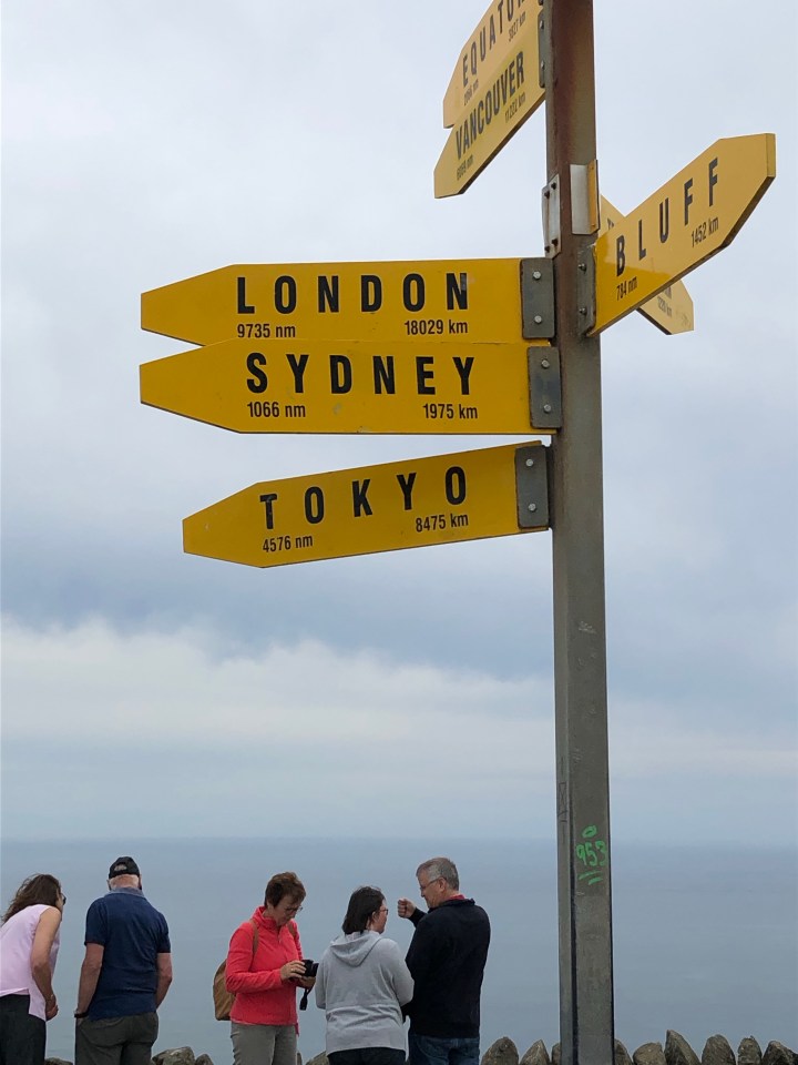 We then went to Cape Reinga which is (almost) the most northerly point. You can’t actually get to the most northerly point. There is a lighthouse and the tree sticking out of the rock on the right is the top of the staircase to the underworld for all Maori spirits. Beyond the lighthouse, two seas meet – the Tasman on the left and the Pacific on the right. It is normally much windier than it was today and , apparently, you can see the waves clashing into each other. Bumped into a German couple from the cruise ship. Small world eh?
