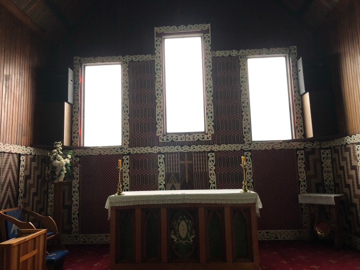 Well we started today again in pissing rain so there are basically no photos from this morning. We drove to Opotiki, also in the Bay of Plenty, a nice little town where we went to the museum – full of old domestic stuff (ooh my gran had one of those) and someone’s shooting collection. We then went over the road to the church, founded by a particularly pig-headed missionary who, having been informed by the local Maoris (who were in dispute with the government) that they suspected him of being a spy because he had taken money from the governor-general to build the church, very properly left the town. Two years later he insisted on going back where he was killed, decapitated, his blood drunk from the church chalice and his eyes eaten. Yuck and double yuck. Now buried next to the altar – martyred for his faith.