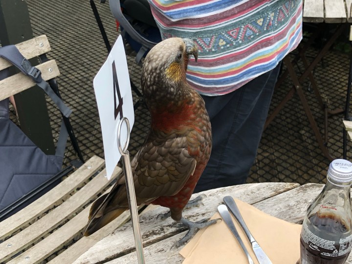 We stopped for lunch at Mount Bruce, a nature reserve. Although we only had time for lunch, we saw a kaka (endangered parrot) that arrived on the balcony demanding my sandwich. We had to fend it off as, apparently, the adults eating human food can kill the chicks when regurgitated. We also saw two takahe chasing each other about but too far away to photograph. This photo is from Google.
