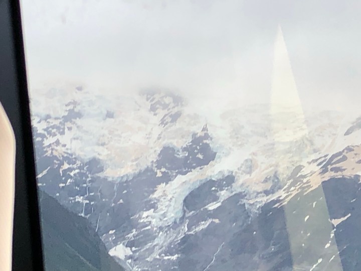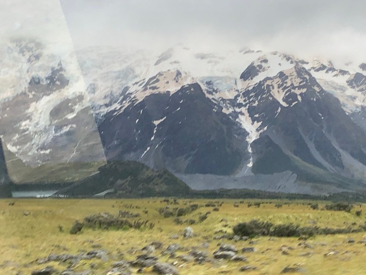 The photo below was taken through the bus window. The pink bits you can see on the snow are dust from the Australian fires.