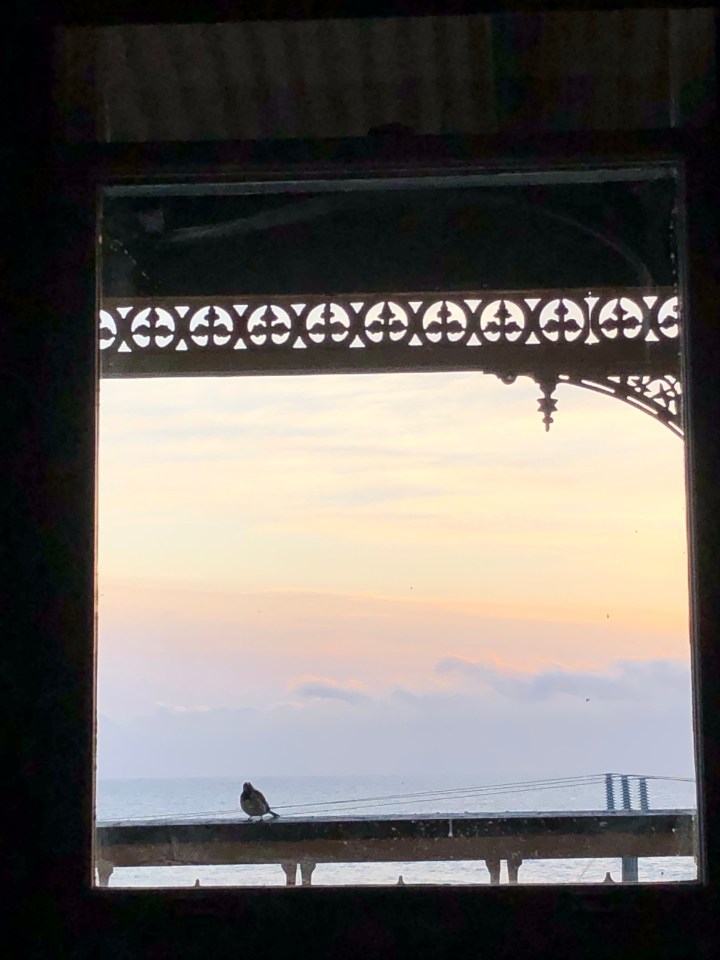 This is the view from my room in the hotel in Lorne this morning. With sparrow.