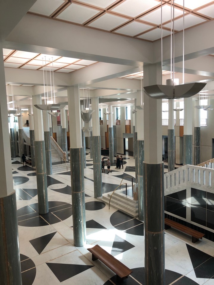 We went firstly to the Old Parliament House which was abandoned in the 80s when it got too small. Two chambers, one in red leather and one in green, just like the mothership. Interestingly, their speakers chair was an exact copy of the one Pugin made for the House of Commons and used timbers from Westminster Hall and Nelson’s Victory. Our original chair was destroyed in the Blitz so the one Bercow has been using is a copy of a copy, made entirely from Australian wood.