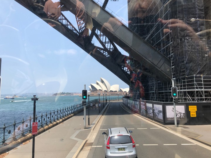 This is a view of the Opera House from under the bridge. You will notice that the sky has cleared – although the hot, windy, fire-friendly weather is due back tomorrow.