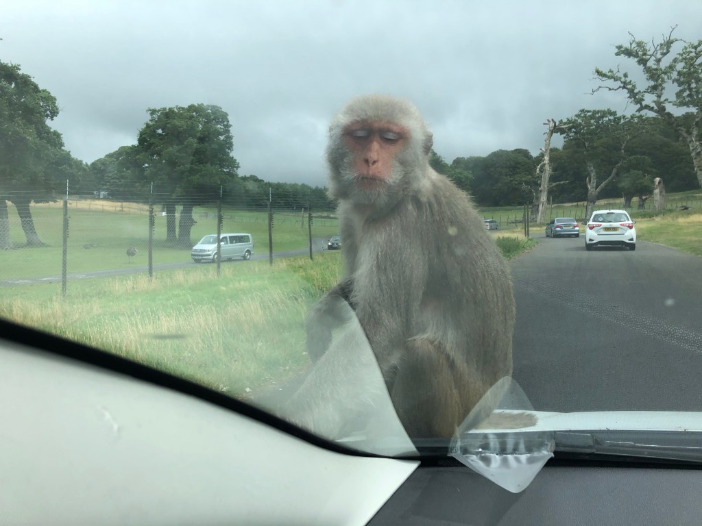 Damp koalaLorikeets. Normally you can go into the aviary with them and feed them but that, being indoors, is closed.Of course, despite the PR department’s best efforts, very few people were attending to this or wearing masks.Damp macaw. Tree porcupine concentrating on its carrot.Giraffes eating. Because they no longer have a whole savannah to browse, the keepers have to pretend there are new leaves on the trees every day. In the Monkey Jungle. Trying to dismantle my car.Bactrian camels nobly posing for photographs.Well fed tigers ignoring a stream of cars.We’ve seen the Lions of Longleat!