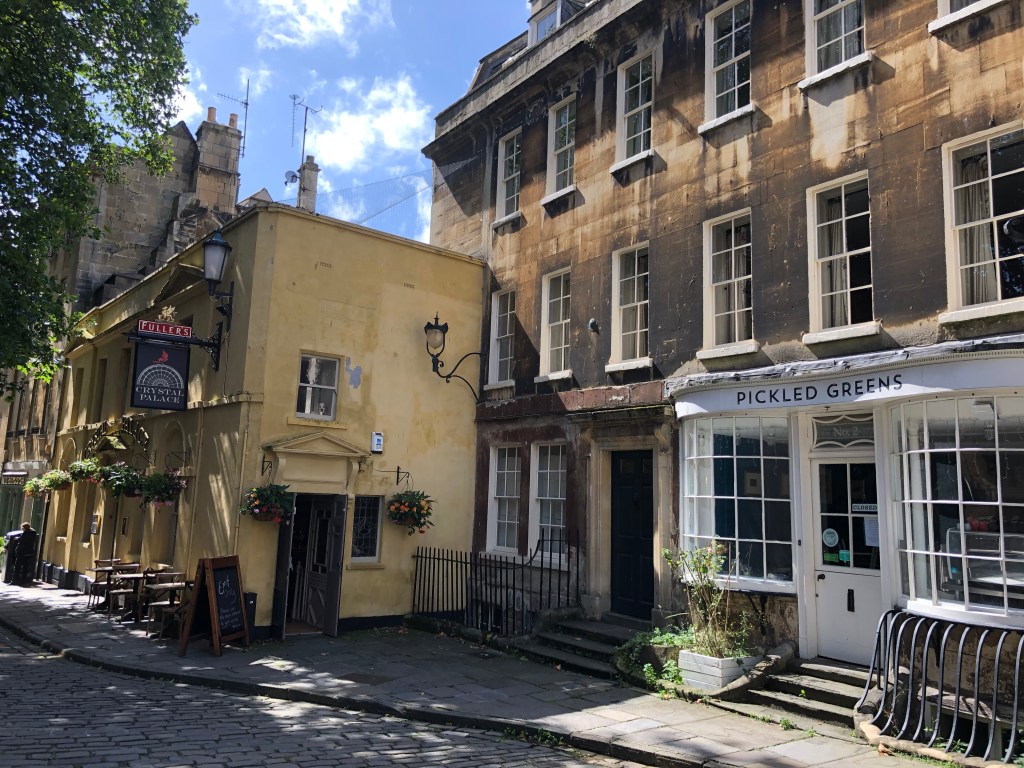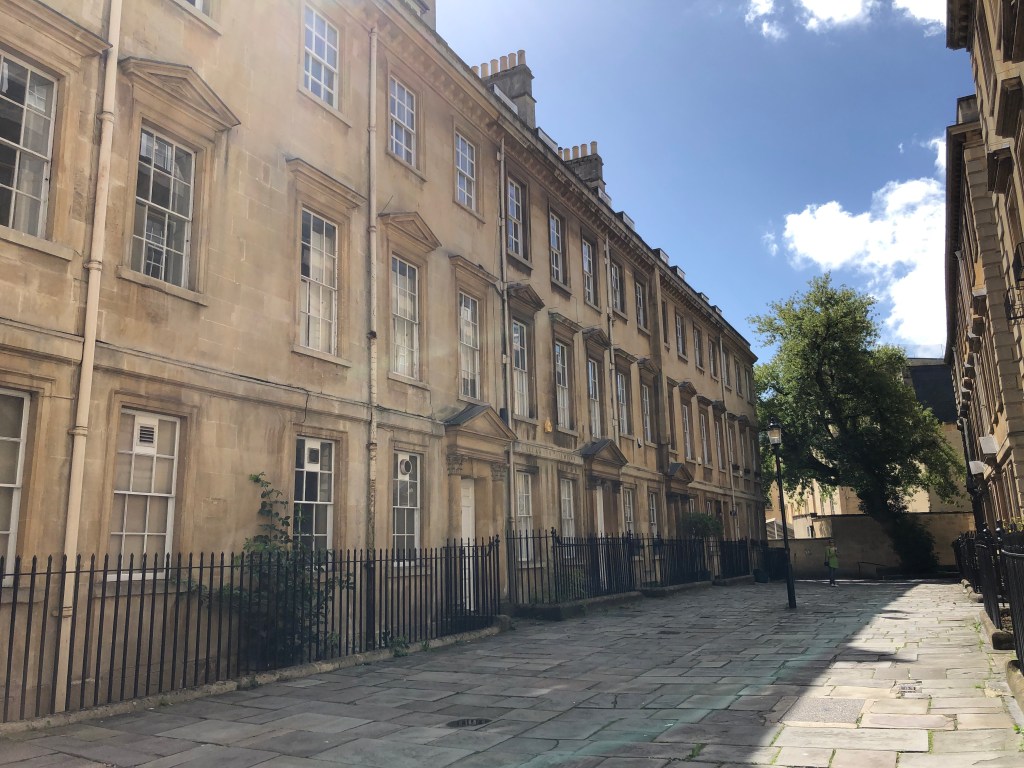The city was laid out to accommodate the many rich people who went there in the eighteenth and early nineteenth century (including Jane Austen who is very popular with the tourist industry) and has a range of lovely Georgian houses. It also, because of its geographical situation, has some awful traffic.