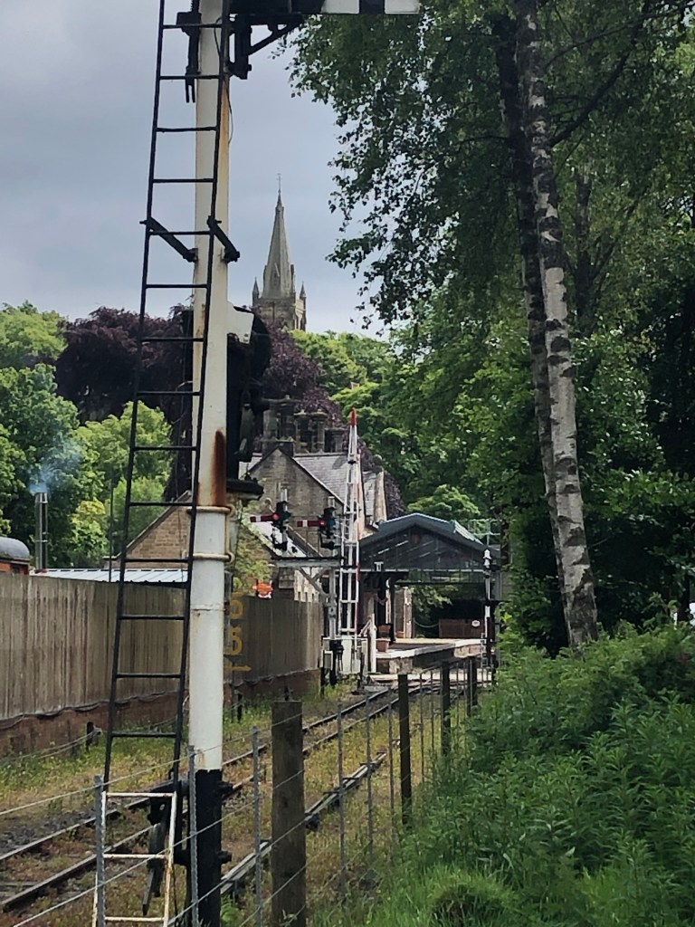 The South Tynedale Railway with Alston church behind.