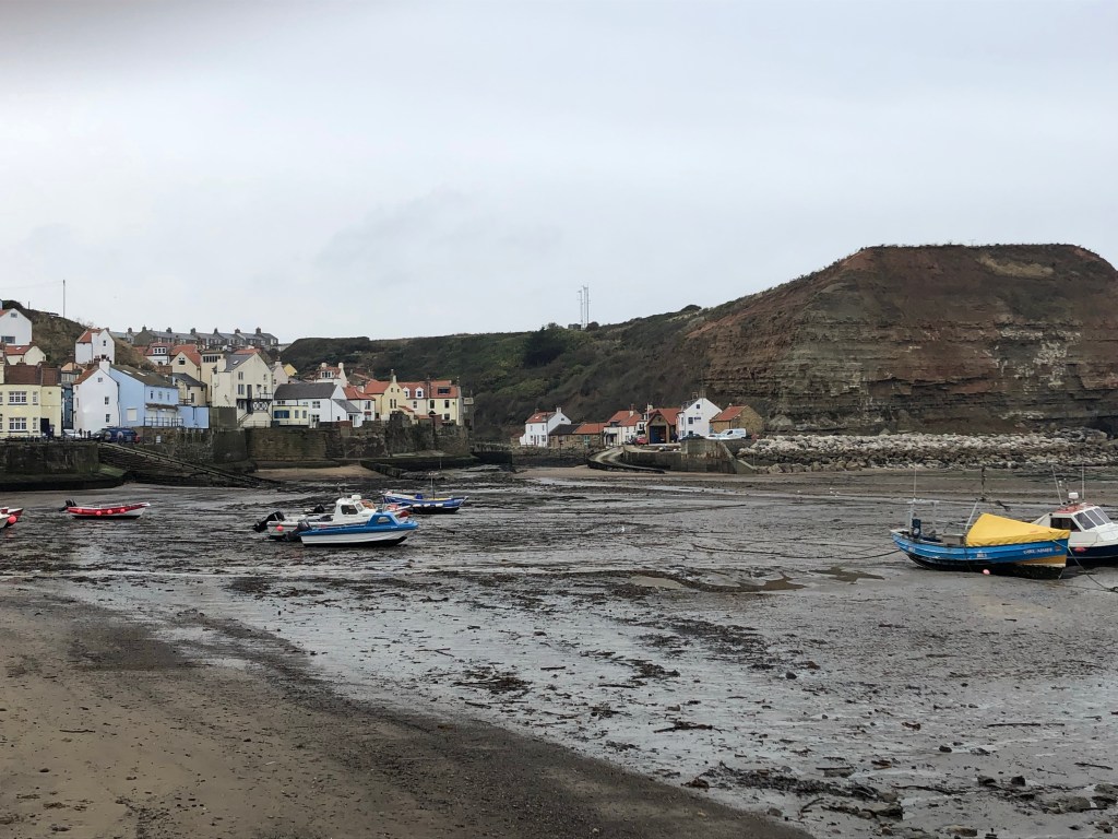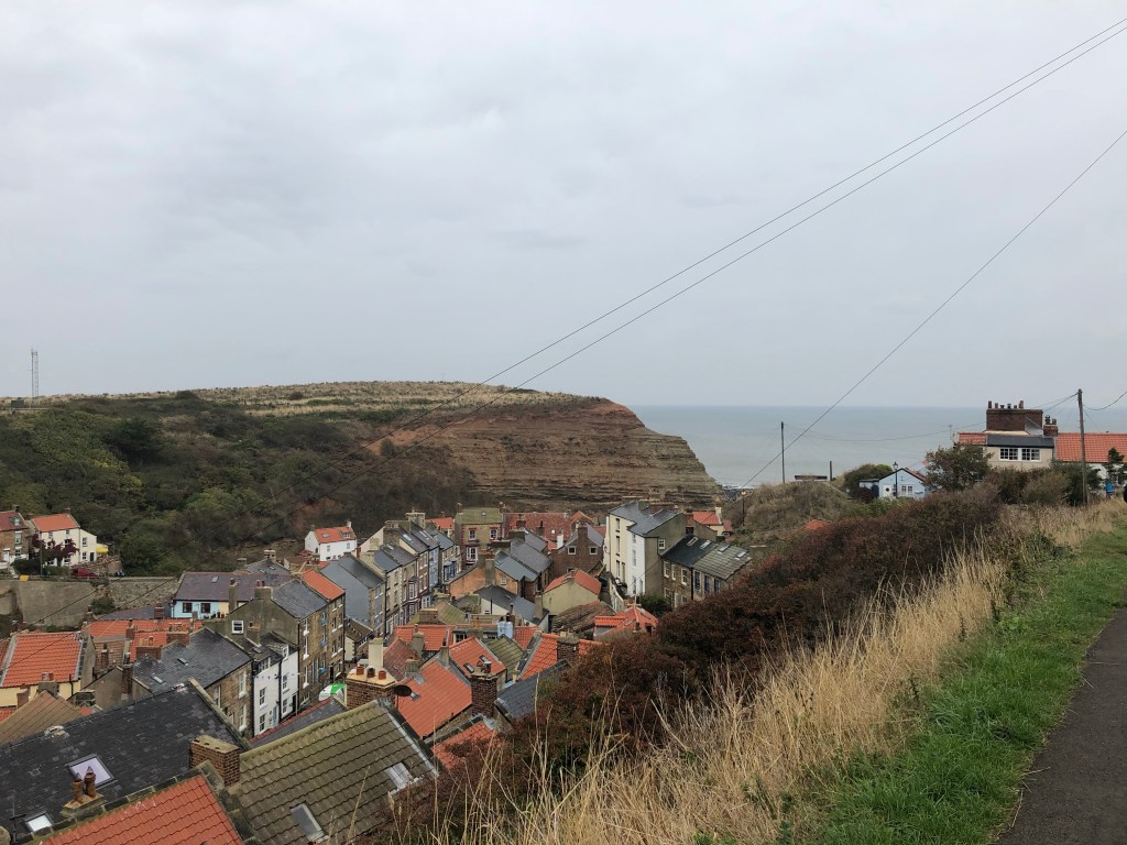 Apparently Staithes used to have the largest herring fleet in the North Sea. Although now it appears to have some fishing boats, it is again full of holiday cottages. Another steep cliff to climb down and tiny stairs and gunnels between houses. Building must have been a very specialised skill.