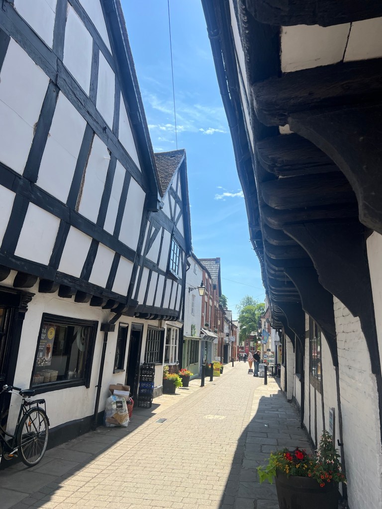 Leominster, site of a monastery in Saxon and Norman times is, despite raids by both the Vikings and the Welsh, one of the largest towns in Herefordshire. In the Middle Ages, the area became very rich because of the wool trade. I understand there was a particular breed of local sheep which gave extremely fine wool. This led to a building boom during the 15th and 16th centuries, a lot of which can still be seen. Some of the half timbered buildings have traces of 13th and 14th century origins.
