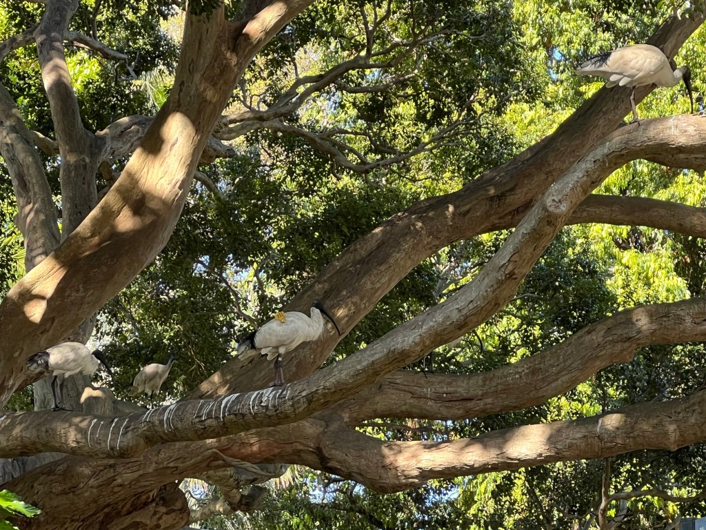 Ibises lurking in the tree over the bin outside the Botanic Gardens cafe.