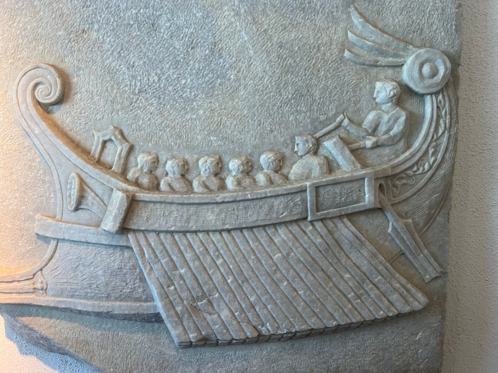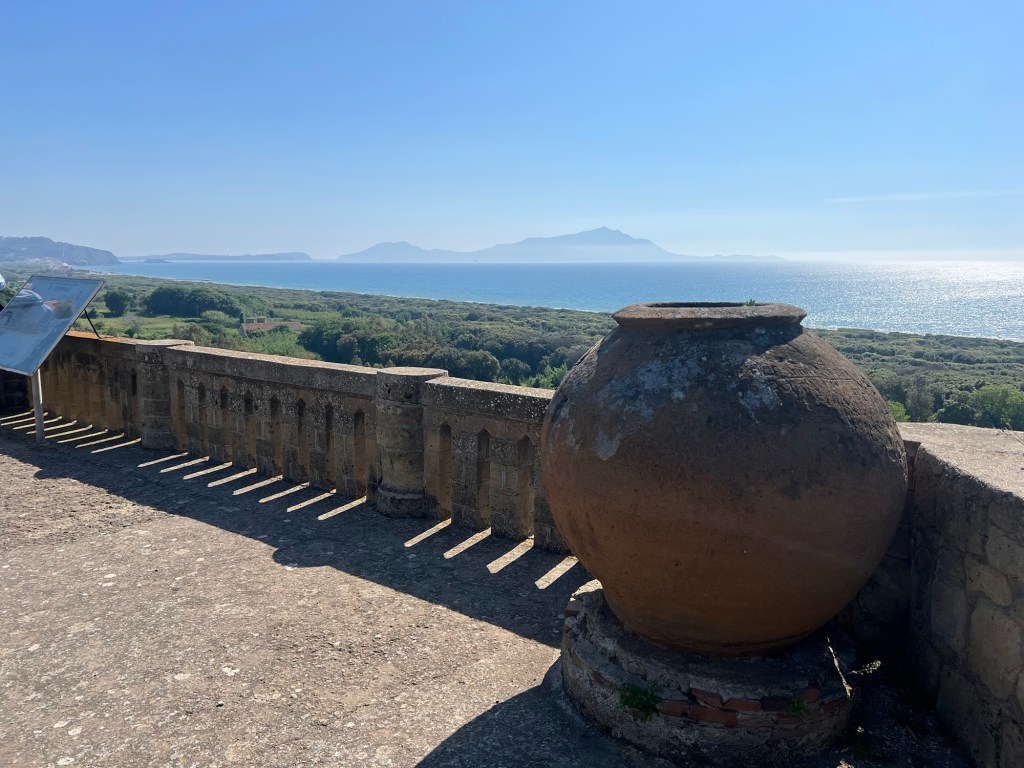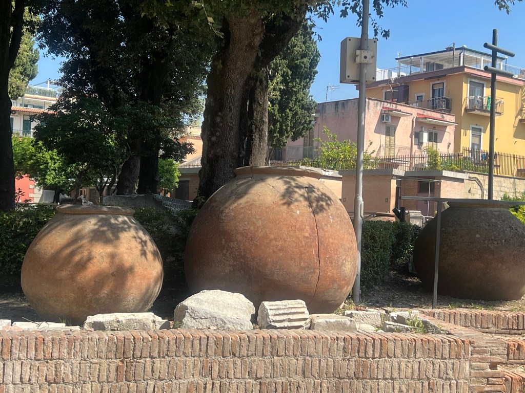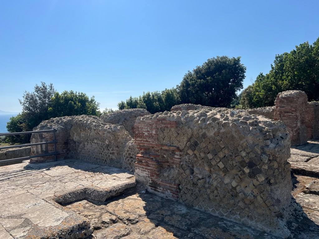 In contrast to most of the other places we have been, the sea is nearer here than it would have been in Roman times. The faint island in the distance is Ischia and the lump on the end of the promontory is Miseno. This was the headquarters of the Roman Navy in 79CE when Vesuvius erupted. Pliny the younger, staying with his uncle, the Admiral Pliny the Elder, was an eye witness. He later wrote letters describing what he’d seen and the death of his uncle who had tried to rescue a friend https://en.m.wikipedia.org/wiki/Pliny_the_Younger.
