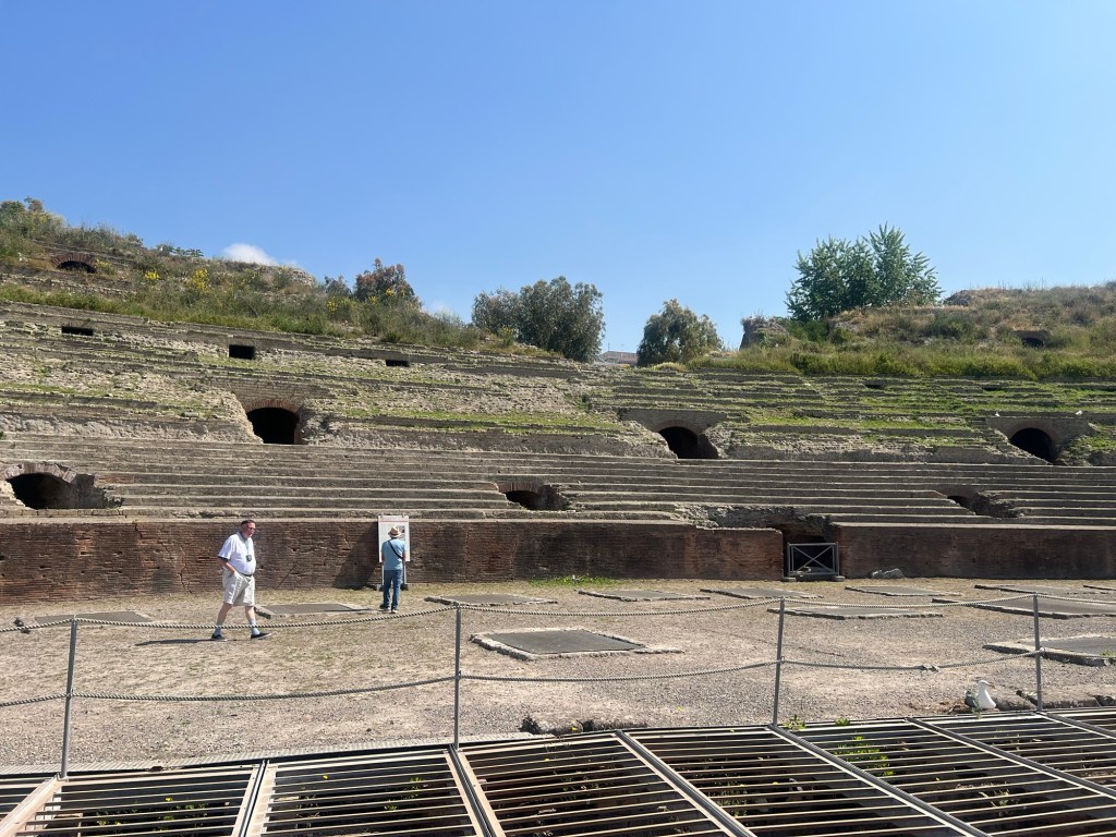 The attraction here is an amphitheatre, started by Vespasian to cheer up the populace after Nero. Although Nero had built gardens in Rome, the population didn’t know what to do with them. They wanted ENTERTAINMENT! Bread and circuses.