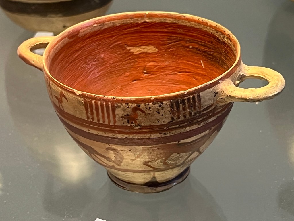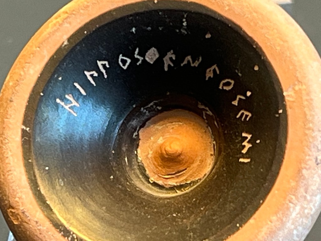 Pot with very early Greek writing. It is thought that the Greeks got their writing from the Phoenicians and that the Romans got theirs from the Greeks.