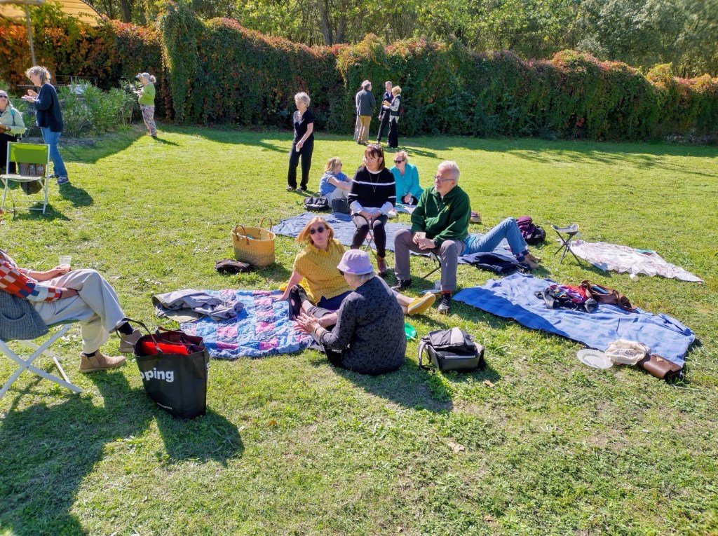 Picnicking. The black blob in the middle with its back to the camera is me.