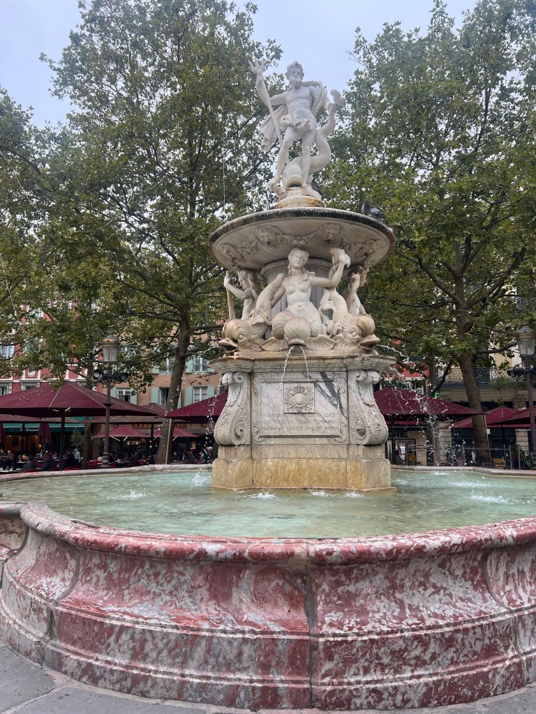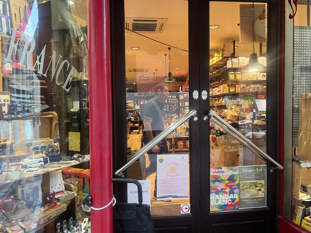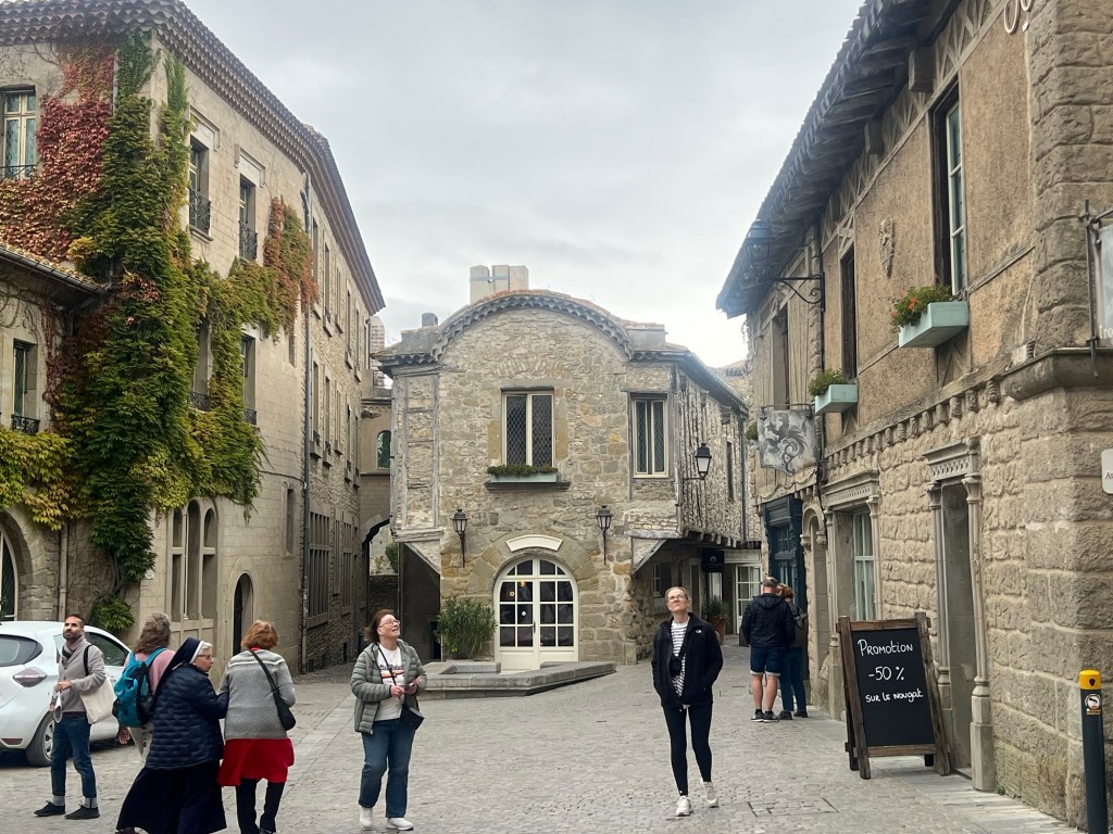 I wandered a bit about the shops on the Bastide side of the river (again, small suitcase), had coffee on the main square where the fortress used to be and a plaque reminding us that the place was sacked by the Black Prince in 1355 and then climbed up to the Cité. (So many steps on this trip)