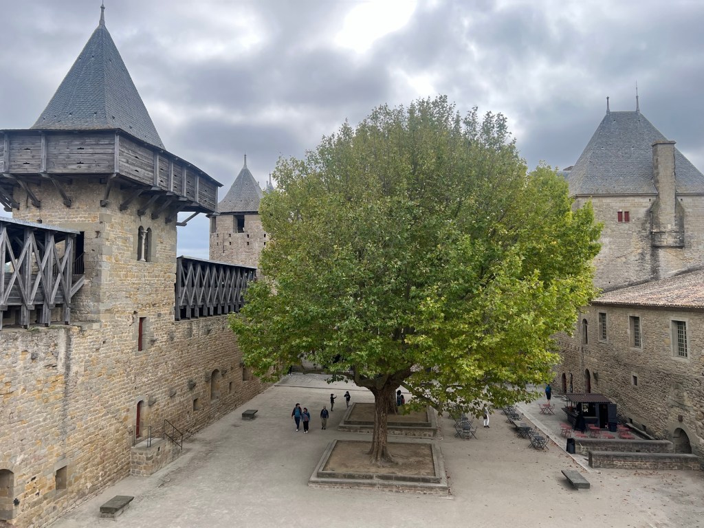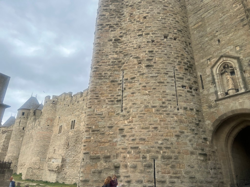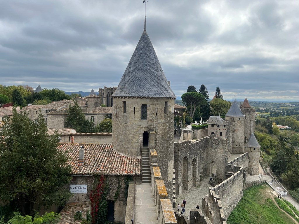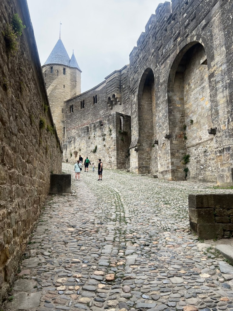 Local myth has it that the town got its name from Lady Carcas, a Moorish ruler who was besieged for 5 years by Charlemagne. She ended the siege by stuffing the last pig with the last of the grain and throwing it over the wall. Charlemagne was so impressed by the fact that they could waste food after 5 years that he left. On the way, he could hear all the bells ringing in the town and was told Lady Carcas sonne. None of this is true although there was a siege by Charlemagne’s father, Pepin the Short.