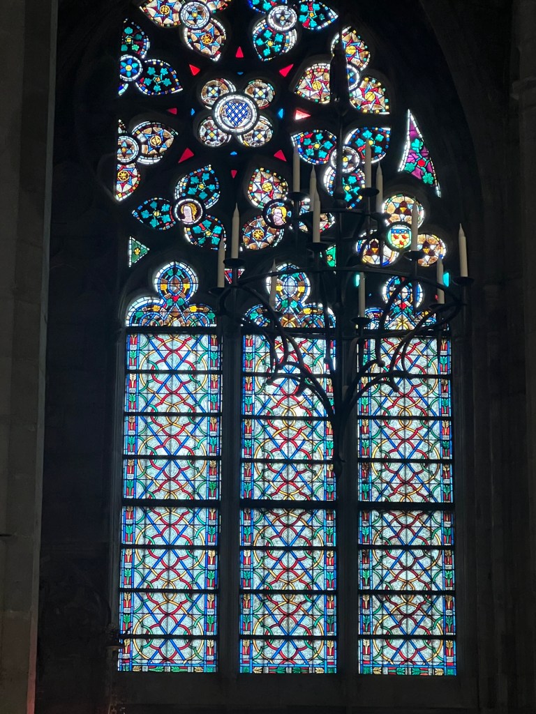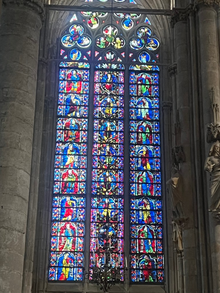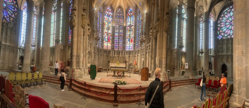 By the 18C the place was in ruins and the population were very poor. The council wrote to the King about knocking it all down but the French Revolution had just started so he probably didn’t get the letter. In the 19C the choice was between knocking it down and restoring it. Luckily, Viollet le Duc, architect responsible for much of the historic preservation of Paris thought the church should be saved as it is a unique combination of Romanesque at one end and Gothic at the other. The stained glass is also by the same artist who did La Sainte Chapelle. This led him on to rebuilding the rest of the town which took the whole of the second half of the 19C.