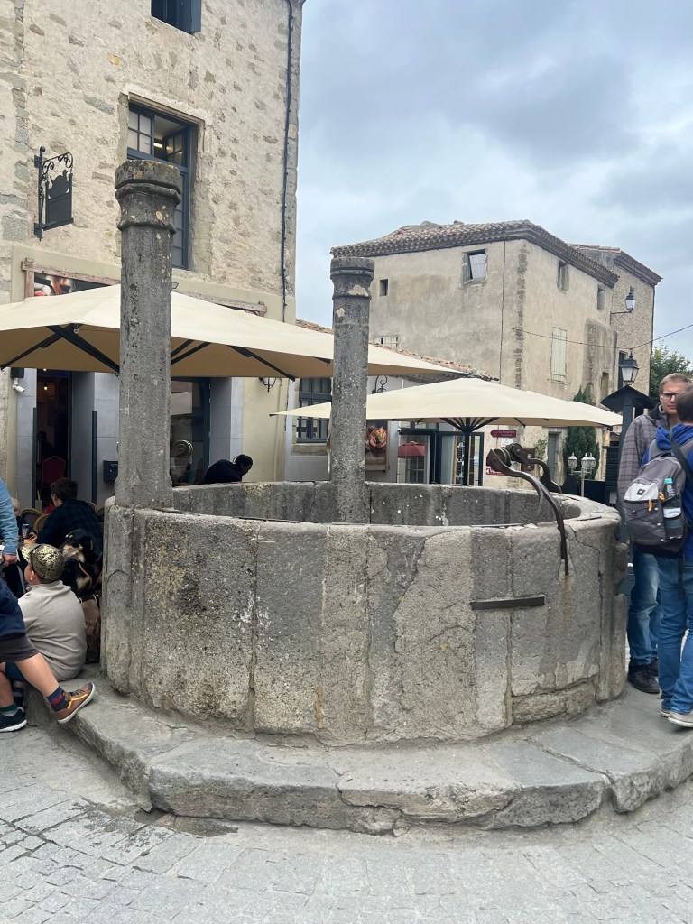 The place was part of the Kingdom of the Cathars in the 13C and was sacked and the population either killed or expelled in 1209. It then became a royal city and was rebuilt. One of the reasons they had surrendered was because they ran out of water so many new wells were built. Of course the place was now so secure that it was never besieged again – invading armies just went round!